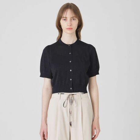 短めな着丈で、すっきりとスタイルアップして見えるカーディガンです。