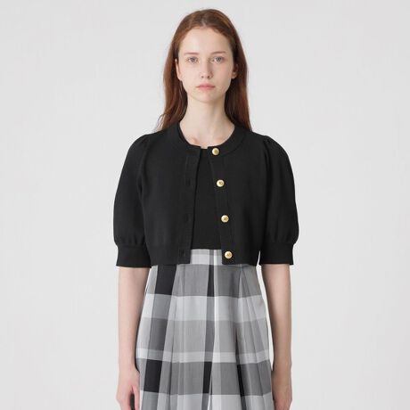 フロントボタンを留めたプルオーバー風の着用も今年らしく、おすすめです。