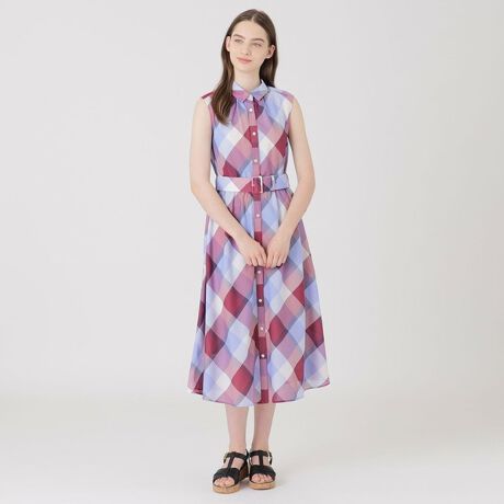 ◆清涼感のあるチェック素材を使用したシャツドレス