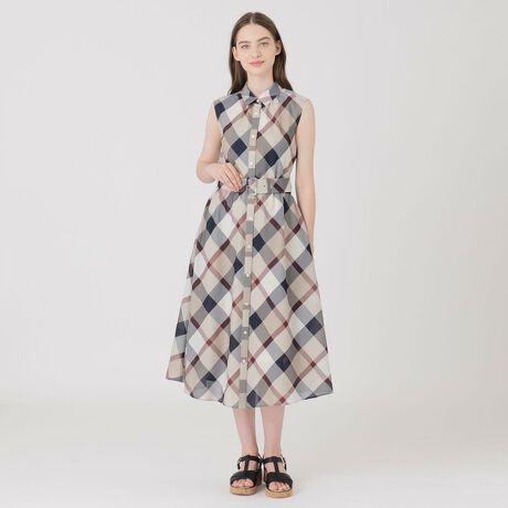 ◆清涼感のあるチェック素材を使用したシャツドレス