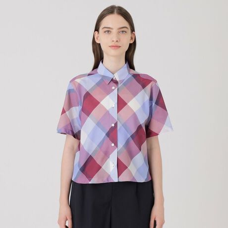 ◆清涼感のあるチェック素材のハーフスリーブシャツ