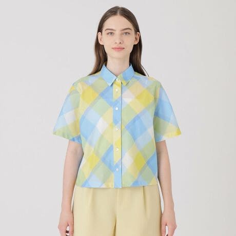 ◆清涼感のあるチェック素材のハーフスリーブシャツ