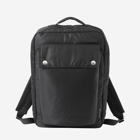 端正でクリーンな表情が特徴のラップトップバックパック。14インチのノートPCが収納できる機能ポケットやファスナー付きのインサイドポケットなど収納力に優れ、ビジネスユースに適したデザインです。マッキントッシュのシグニチャーであるゴム引きコートに使用しているハイグロス仕上げのドットボタンがアクセントになっています。