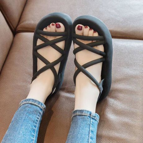 足元をやさしく包み込むクロスラインストラップサンダル。<br>