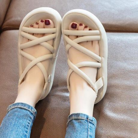 足元をやさしく包み込むクロスラインストラップサンダル。<br>