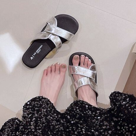 ナチュラルな雰囲気がおしゃれなフラットサンダル。<br>