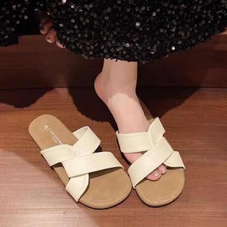 ナチュラルな雰囲気がおしゃれなフラットサンダル。<br>
