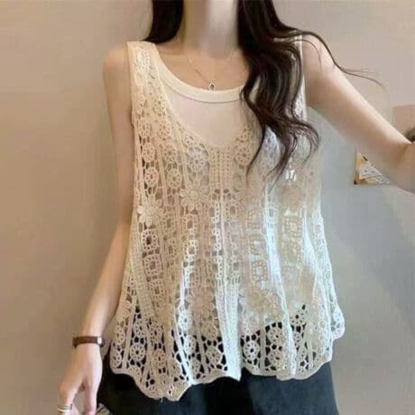 ふんわりとした透かし模様がおしゃれなクロシェ編みベスト。<br>