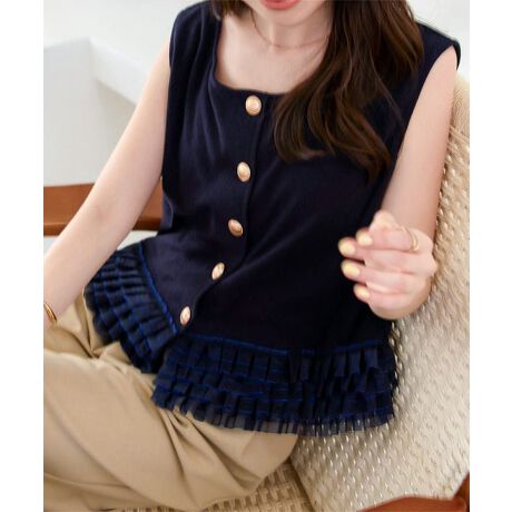 夏場はノースリーブ一枚で、季節に合わせてシアートップスや長袖インナーを重ねたレイヤードスタイルもおすすめです◎