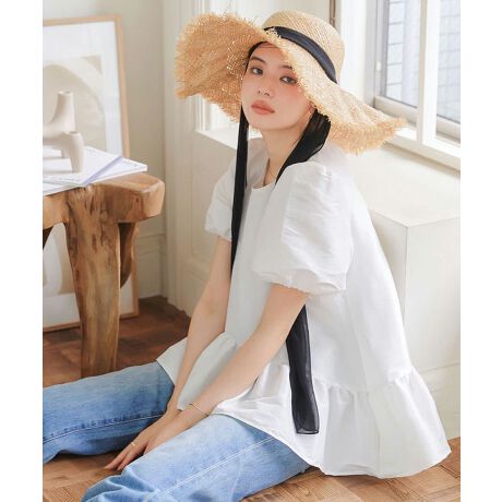 フェミニンになりすぎない、あえて下めにつけたペプラム切替えがおとなにも馴染みます。