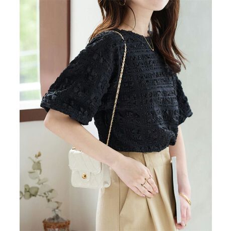 お手入れのラクさもうれしい5分袖サマートップスです。