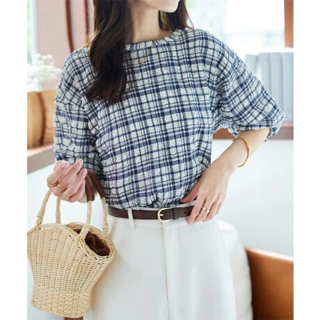 お手入れのラクさもうれしい5分袖サマートップスです。