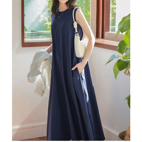 綿100%生地ながらも、表地に汗が染みてこない夏にぴったりのマキシワンピースです。