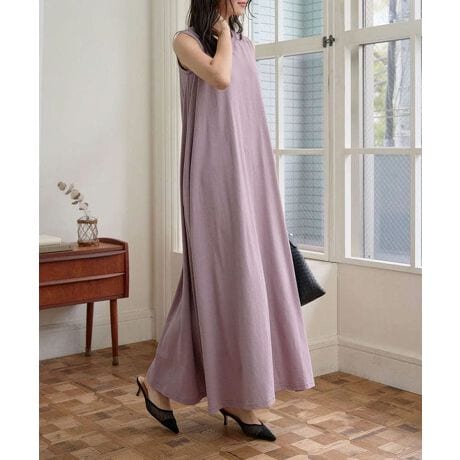 綿100%生地ながらも、表地に汗が染みてこない夏にぴったりのマキシワンピースです。