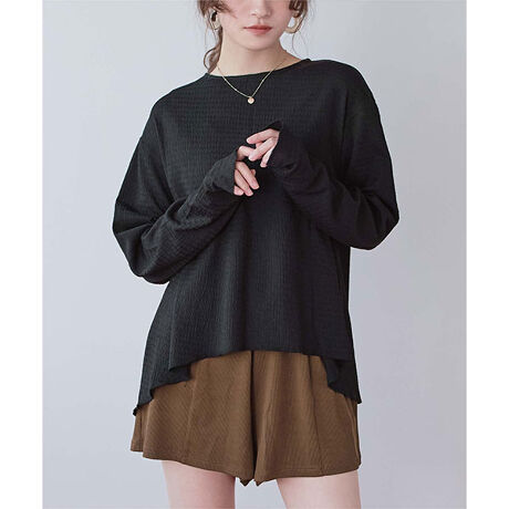 ・指穴付きのラッシュガードトップスはデイリーのスタイリングにも使える万能アイテム◎