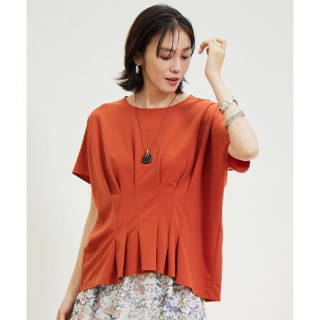 1枚でサマになるイージーな着心地のトップス■デザインタックが華やかなジャージートップスです。スタイリング要らずでサマになるデザインでありながら、ジャージーならではのイージーな着心地の良さも兼ね備えたアイテムです。ウエスト周りのタックは気になる部分を程よくカバーしつつ、腰の位置を高くすっきりと見せてくれます。同素材のパンツ(PRWMGA0031)とセットアップで着て頂くのもおすすめです。■素材高密度な加工を施した超細番手の綿糸と、特殊な技術を駆使したポリエステル糸を使用しております。2つの糸を組み合わせることでストレッチ性や、接触冷感、UVカット、吸水速乾、抗菌防臭と夏に嬉しい機能性があり、さらりとした質感で着て頂けます。■同素材アイテムパンツ(PRWMGA0031)ワンピース(OPWMGA0031)