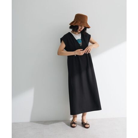 背中のレースアップディテールがフェミニンなジャンパースカート。緩やかに広がるフレアシルエットにフレンチスリーブと深めのVネックを合わせ、すっきりとしたスタイリングを演出します。ゆとりのあるサイズ感でリラクシーな着心地も魅力的。合わせるアイテム次第でロングシーズン活躍するおすすめのアイテムです。透け感[なし]