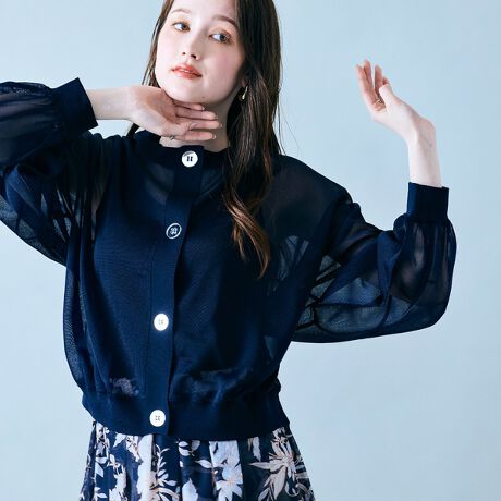 ・肌あたりのいいサラッとした風合いで、透明感のある繊細なシアーカーディガン。