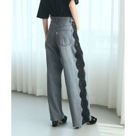 カジュアルなデニムをフェミニンに昇華した、他にはないサイドレースパンツ。ウエストはヴィンテージのデニムをリメイクしたようなラップデザインに仕上げ、構築的で動きのあるデザインに仕上げています。 高級感溢れる美しいリバーレースは別注で染めてから接ぎ合わせており、細部まで Grace Class ならではの拘りを感じることができる一本。レース部分は太腿下から肌が透けて見え、程よい肌見せが大人っぽさを演出しました。綿とテンセルを混紡し、やや甘織りにすることで柔らかい肌触りで大人っぽさも感じられる、トレンド感のあるデザインに。ゆったりとしつつもすっきり綺麗なシルエットとスマートなウエストで脚長効果も抜群。ビンテージムード漂う拘りの色落ちカラーにもぜひ注目を。いつもとは一味違うワンランク上のデニムスタイルを楽しめるラグジュアリーなデニムを、ぜひお見逃しなく。