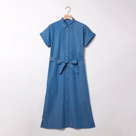 夏のお出かけに最適なダンガリー生地のシャツワンピース。さらりとした質感と微光沢感が品の良さを漂わせ、カジュアルな印象になりすぎない一着です。クラシカルなピンタックやフレアシルエットもデザインのポイント。共布リボンは着脱が可能なため、気分やシーンに合わせてスタイリングアレンジが楽しめます。