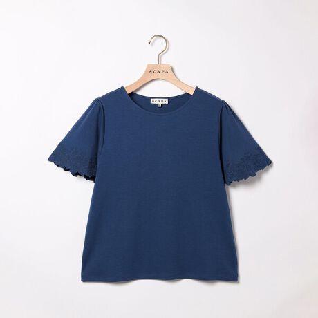 袖口にフラワー刺繍をあしらったエレガントなカットソーです。ほんのりツヤ感のあるクリアな風合い、フレアスリーブ、すっきりしたシルエットなどもポイント。カジュアルになりがちなカットソーながら、品よく着こなしていただけるアイテムです。一枚着はもちろん、カーディガンやシャツのインナーにもおすすめです。