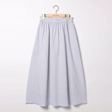 爽やかで夏らしいサッカーストライプ生地のスカート。シンプルなデザインながら、ふんわり広がるフレアシルエットがコーディネートをフェミニンに彩ります。ゴムギャザー仕様のウエストで穿き心地がよく、着脱もスムーズ。きれいめにもカジュアルにもスタイリングでき、幅広いシーンに活躍する一着です。