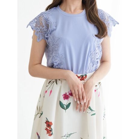 繊細なレースで魅せる涼やかな印象のノースリトップス