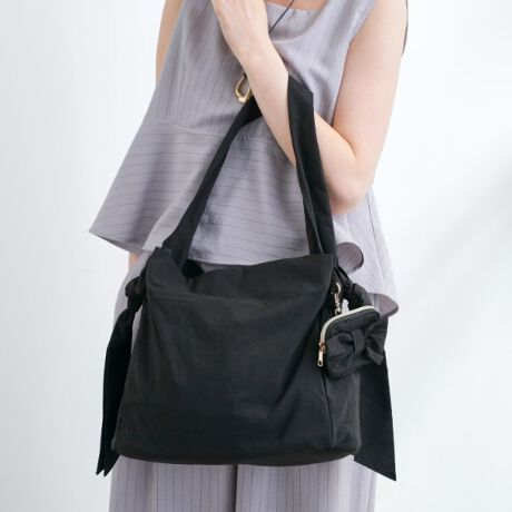 同素材のリボンモチーフ付きのチャームポーチがセットです。