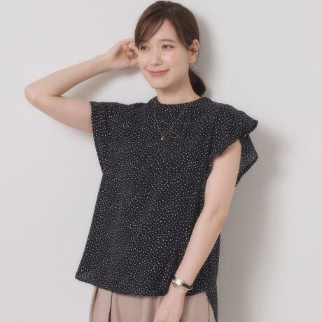 控えめフリルが大人可愛い品あるトップス。
