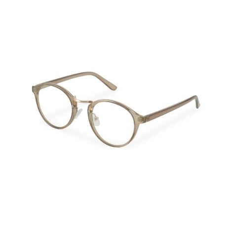 ブリッジのメタルがアクセントになり、目元が明るい雰囲気になります。フレームの色はライトベージュというより、グレーに近い色に感じました。