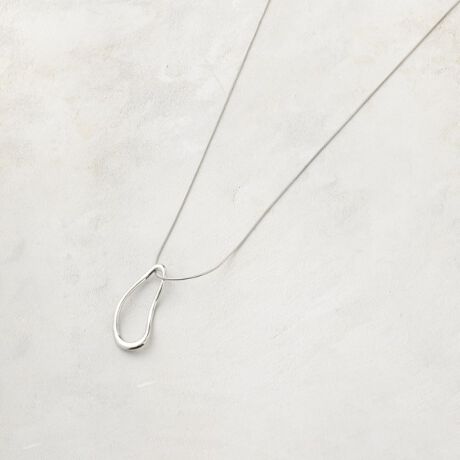 変形デザインのオーバル型メタルチャームをチェーンネックレスに仕上げたアイテム。