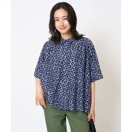 発色が美しく、ゆったりシルエットの夏に映えるジオメトリックブラウス