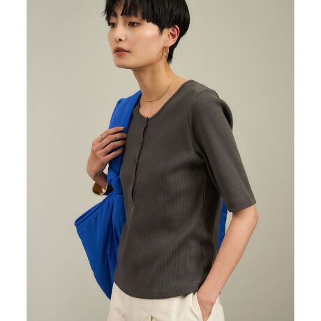【WEB限定】プリマベールリブヘンリーネックTシャツ[UVケア・洗える]