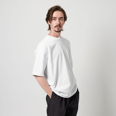 1枚着として合わせるボトムを選ばずウエストインでもアウトでもバランスの良い着丈でオールマイティに使いやすいアイテムです。