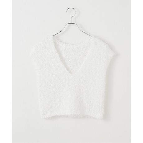 薄着の季節に毛足の長いシャギーがファッショナブルなエッセンスを加えるニットベスト。