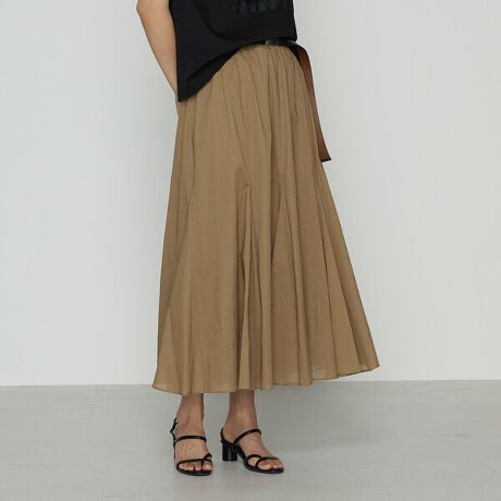 裾に向かって広がりのあるシルエットが美しいギャザーフレアスカートです。