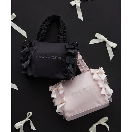 【2WAY仕様】サイドのサテンとオーガンジーのリボンが大人可愛い2WAYトートバッグ。
