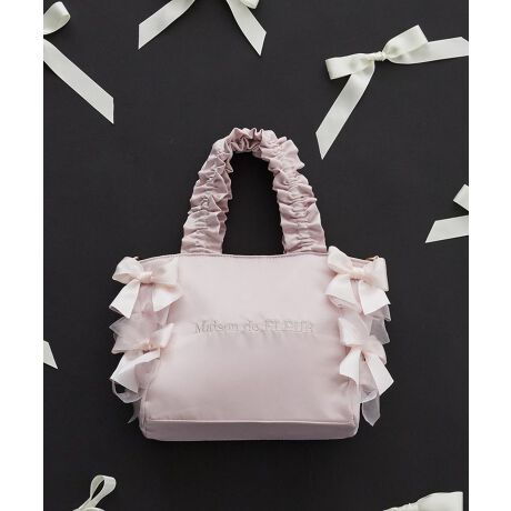 【2WAY仕様】サイドのサテンとオーガンジーのリボンが大人可愛い2WAYトートバッグ。