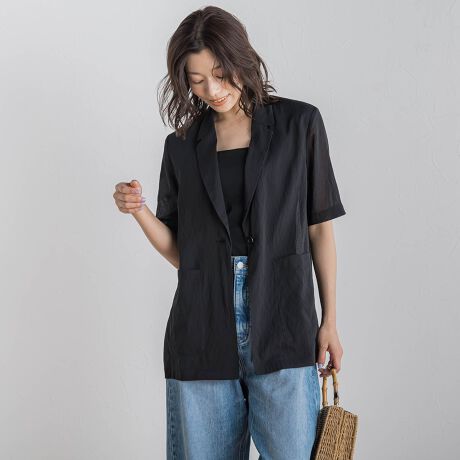 ドライタッチなシアー素材が涼しい着心地のハーフスリーブジャケット。