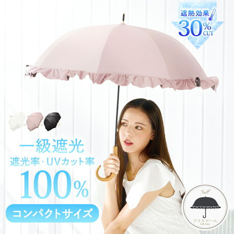 人気のフリル傘です。半ドームが日差しからすっぽりと守ります。甘すぎず大人でも持ちやすいデザインです。