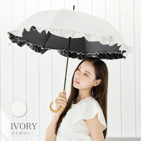 人気のフリル傘です。半ドームが日差しからすっぽりと守ります。甘すぎず大人でも持ちやすいデザインです。