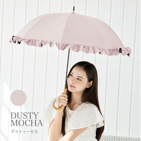 人気のフリル傘です。半ドームが日差しからすっぽりと守ります。甘すぎず大人でも持ちやすいデザインです。