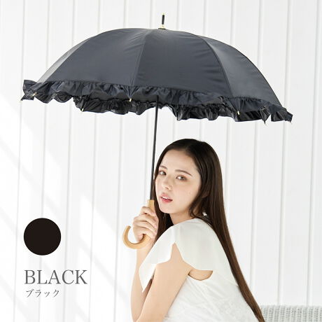 人気のフリル傘です。半ドームが日差しからすっぽりと守ります。甘すぎず大人でも持ちやすいデザインです。