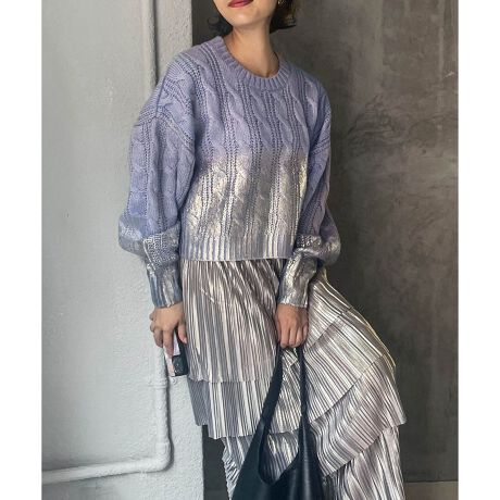 【ENIM BY VICKY】シルバー箔プリントクロップドケーブルニットトップス《手洗い可能》