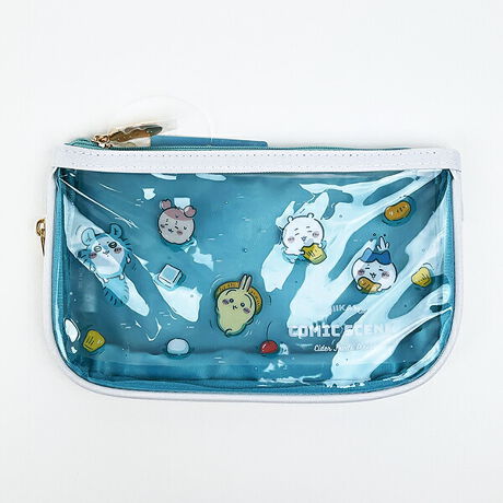 ちいかわの可愛いペンケースクリアフラットです。サイドファスナーを開けるとマチが広がるので機能性抜群☆爽やかなカラーリングでお宝さがしの冒険やプールのようなフルーツポンチなど夏休みのようなストーリーをメインに描かれたシリーズでとってもキュート♪ちいかわ好きには嬉しいデザインかも☆ぜひ同シリーズのお好きなアイテムを揃えてみてください♪