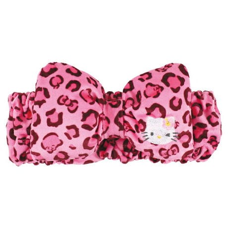 ハローキティのヘアバンドです。洗顔時やメイク時に活躍すること間違いなし!ヒョウ柄リボンが可愛すぎます☆可愛いヘアバンドで朝から気分も上がっちゃいそうです♪