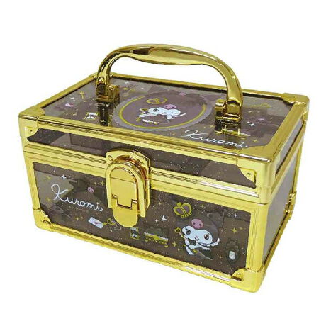 フチはメッキで、面はラメ入りのクリア素材でとってもキラキラカワイイ!!中にはトレーが付いていて二段で収納できます。置いておくだけで可愛くて眺めていたくなっちゃうバニティケースです。小物やメイク道具、文具など色々入れられます♪こちらはクロミちゃんデザインです。
