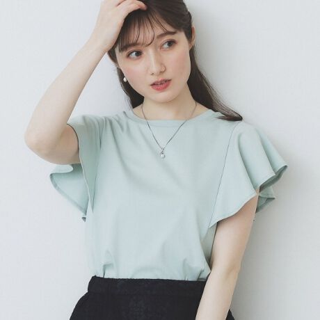 接触冷感の生地はポリエステルなどが多いですが、こちらは綿100%でとても着心地が良く、表面がきれいに見える加工も素晴らしいです。フレアスリーブは、生地にパールやダイヤなどの装飾がなくても華やかなアクセントになり、カジュアルなパンツにも合わせやすくて気に入っています。半袖のTシャツのように袖が筒状になっていないため、涼しく感じられるデザインです。後ろ中心に縫い目がないほうがよかったのですが、着てみるとそれほど気になりませんでした。色はかなり暗い紺ですが、もう少し明るめのブルーのほうが、いろいろ合わせやすいかなと思いました。サイズは、普段Mサイズを着ていますが、こちらは少しゆとりがあるように感じます。Sサイズのほうが、体のラインがきれいに出るかもしれません。
