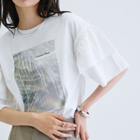 ファブリックフリル袖が印象的なカットソーは、シンプルながらも目を惹く存在感を放つ一着。