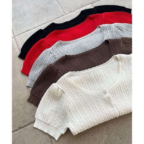 立体的なケーブル編みとコンパクトなサイズ感がカワイイニットカーディガン。